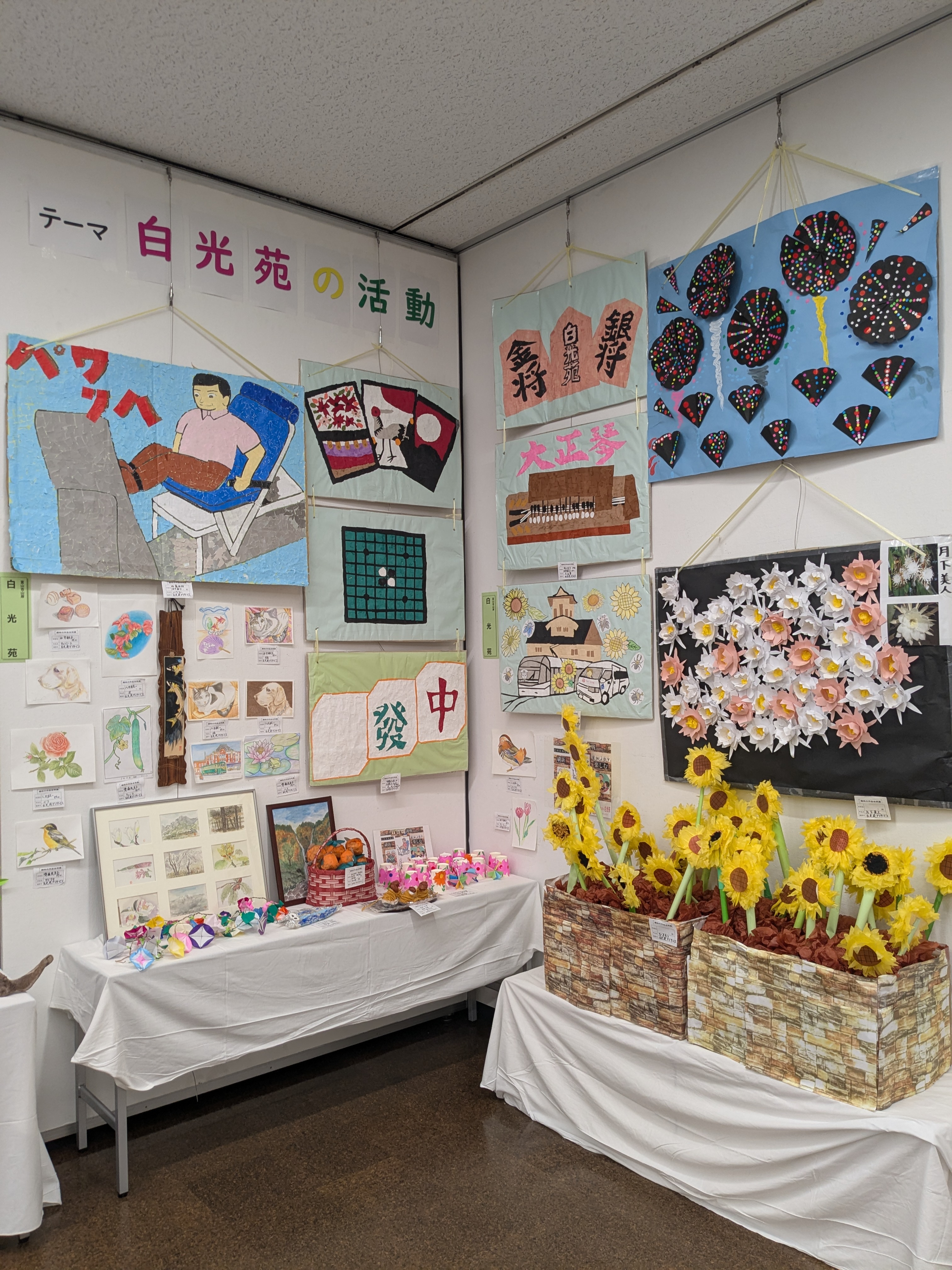 施設利用者の素晴らしい作品が会場一杯に掲示されました。